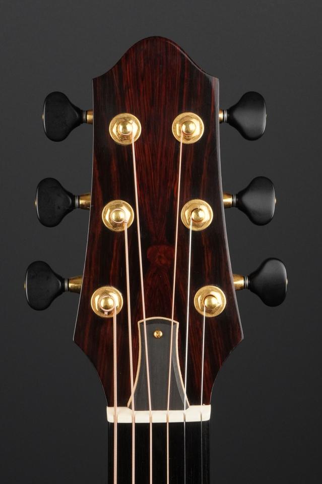 ヘッドプレートの表裏共に、ブラジリアンローズウッドが使われ、ヘッドトップは、中央でブックマッチのシンメトリー。
