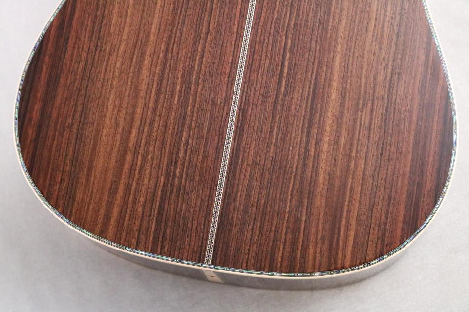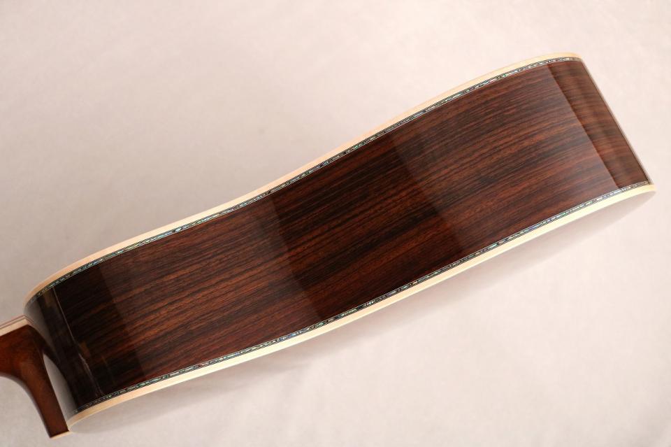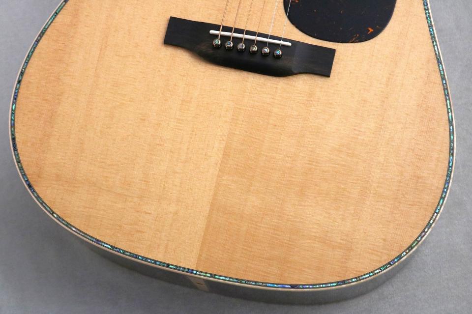 ビンテージMartinのサウンドは塗装やトップ以外の響きも大きく影響しますが、VTS加工されたスプルースは新品の段階で大きく深く鳴るビンテージMartin のような響きが含まれており非常に魅力的なサウンドになっています。