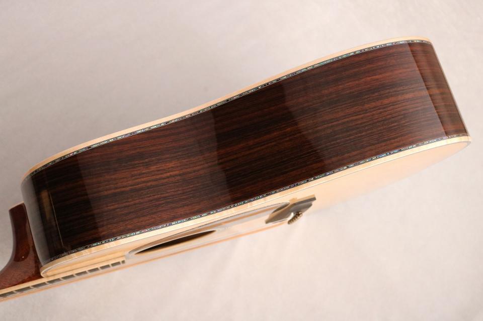 長らく生産がされず時が経ち、1968年にMartinヒストリーの研究者マイクロングワースの提案で再生産が始まります。ボディ周りと指板のハイポジションまで装飾で縁取られ、サイド&バックにもインレイの縁取りが施された豪華な外観。指板のポジションマークに大きく印象的なヘキサゴンインレイとしたおしゃれで手の込んだインレイとなっている点が特徴です。