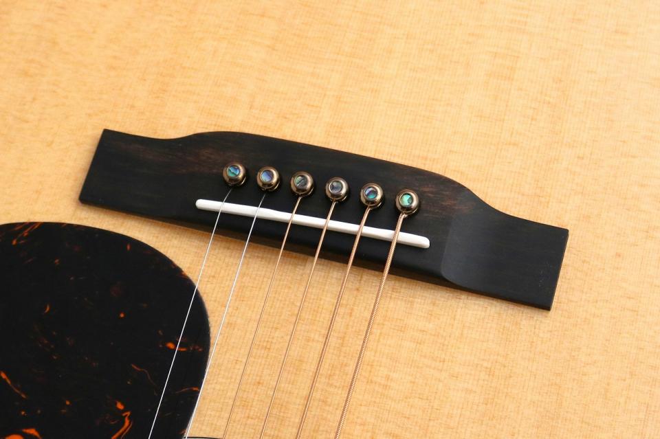 音を鳴らした瞬間だけでも当モデル、個体の良さが詰まっていますが、鳴らした音の残響もブリッジ内部のカーボンプレートが作用し弦振動を効率よくボディへ伝達しているからか、まるでリバーブがかかっているかのような繊細で美しい残響を残しており、他モデルとは一線を画しています。
