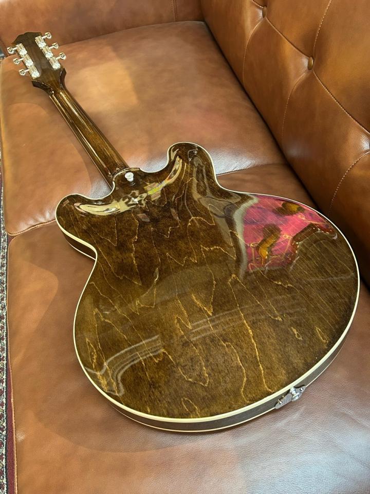 Casinoは買収後に誕生したモデルです。すでにギブソンから発売されていたES-330というモデルが元となっております。この頃はエピフォンだからグレードを落としているということは無く、ギブソンと同等のグレードで製造されました。そのためCasinoとES-330は実質ほぼ同等のギターと見ることができます。このモデルを一躍有名にしたのは紛れもなくビートルズによるものです。ポール・マッカートニー、ジョン、レノン、ジョージ・ハリスンの3人が使用しており、その姿は何度も映像や写真に残されました。彼らが使用していたCasinoはもちろんUSA製です。しかし1970年代に入るとエピフォンブランドの生産拠点が日本に移ります。また、現在ではアジア諸国に製造拠点を移しております。1970年以降はCasinoをはじめエピフォンブランドの製品がGibsonで製造されたことはありませんでした。しかしUSA製Casinoの復活は多くのファンが待ち望んでおりました。そして2020年のNAMM ShowでついにUSA Casinoの話題が出ると瞬く間にファンの関心を得ることに。その後、実際に製品化されるまで1年以上かかりましたが生産本数が少なく、なかなか多くのファンの手元にお届けすることができませんでした。