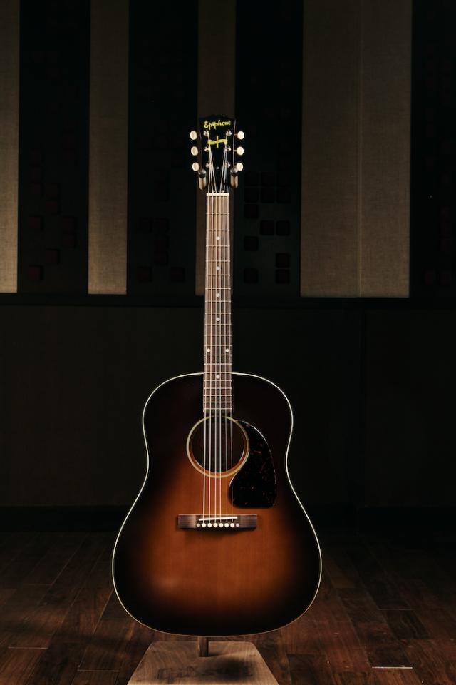 当モデルは、奥田氏愛用の1945年製J-45をベースに2021年にリリースされた『Gibson Tamio Okuda J-45』のエピフォン版で、奥田民生氏監修のもと制作されました。ギブソン・カスタムとエピフォンのコラボレーションにより誕生したエピフォンのプレミアム・シリーズ『Inspired By Gibson Custom』からリリースされ、ルックスからサウンドに至るまでギブソンに限りなく近づけたクオリティを、よりお買い求め安い価格帯で提供します。