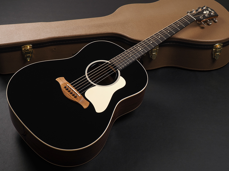 今回入荷した「Gold Label 517e Blacktop」は、伝統的なラウンドショルダー「Grand Pacific」シェイプを採用。漆黒のトップとリニューアルされた深胴ボディが生み出す圧倒的な低音の迫力と、温かく熟成されたようなウッディな響きを兼ね備えた1本です。
