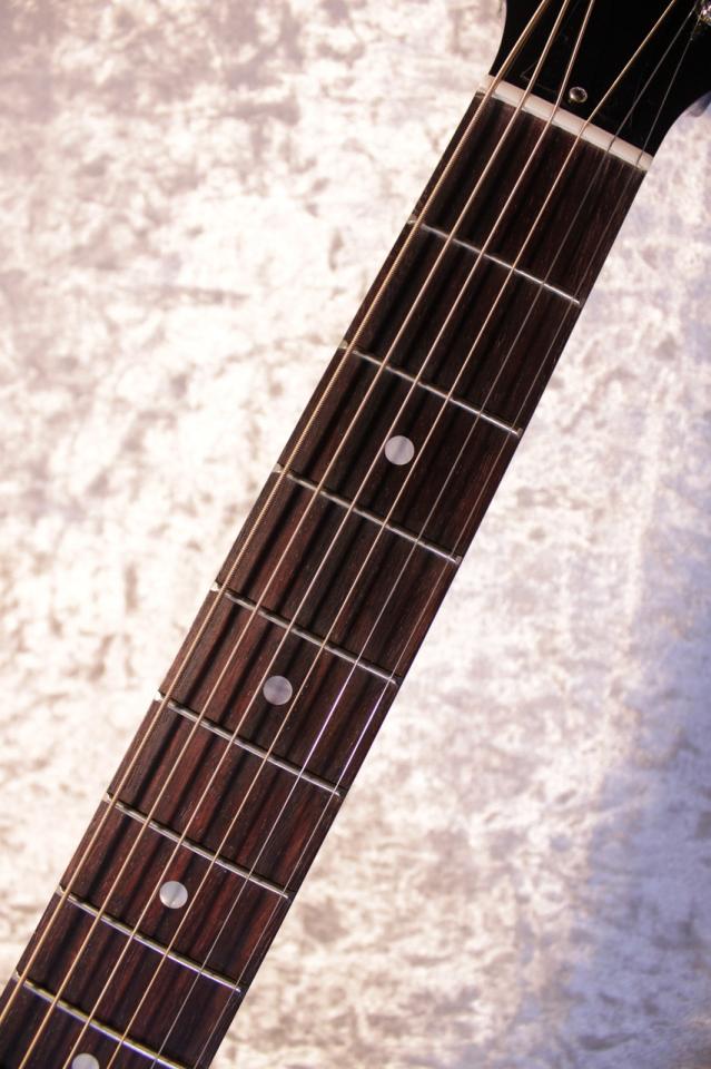 小振りで抱えやすく、低音弦から高音弦までバランス良く出力してくれますのでオールマイティにご使用いただける楽器です。何年も弾き込んでいただき枯れたブルージーなサウンドに育て切っていただきたいものです。