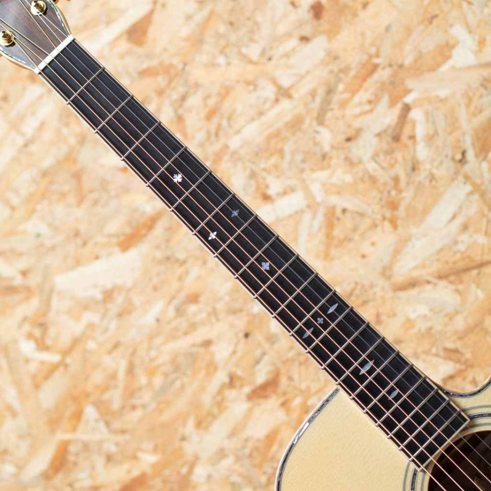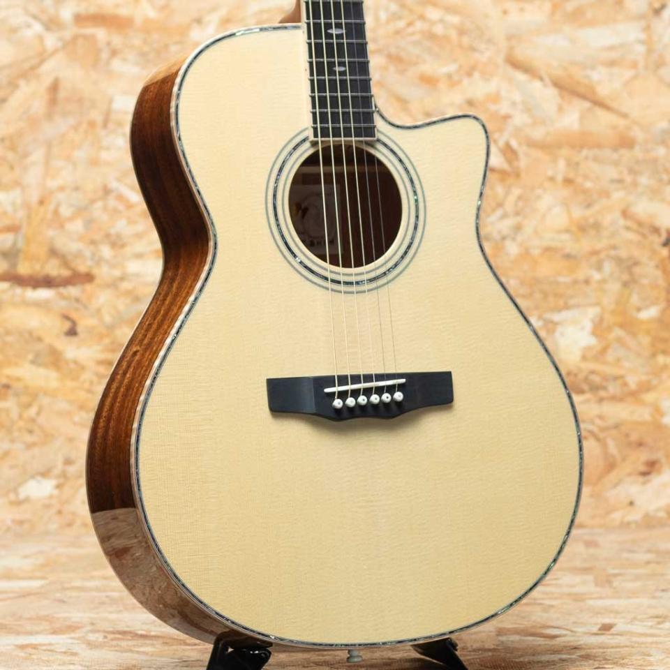 以前はフォークブームの一翼を担っていた国産ブランド”Morris”、2000年代初頭頃より大量生産から半手工品へというキャッチフレーズを掲げ、シフトチェンジ。現在ではフィンガーピッキング用ギターの顔と言えるファクトリーブランドとして長野県松本で良質なギターを生産しています。本器はHAND MADE PREMIUMにて製作された、ショップ・オリジナル・カスタム” SE-93 Custom "。イングルマンスプルーストップ、マホガニーサイド&バック、ダイヤモンドボリュート付きマホガニーネック、エボニー指板&ブリッジ、ゴトーゴールドペグ、アバロンロゼッタ、メイプルバインディング、グランド・オーディトリアムボデイシェイプ、ナチュラルフィニッシュ。ボディトップとヘッドトリムにはアバロンインレイを配し、指板にはスノーフレイクスMOPポジションマークをオーダー。SEシリーズを基としたこちらのモデルはフォワードシフテッドXトップブレーシング&ラダーバックブレーシングにスタンダード・ラウンドバックの組み合わせにより、豊かでありながら柔軟なコントロールが可能。トップ材をイングルマンスプルースにアップグレードする事により、レスポンスの向上とより甘く艷やかなサウンドをお楽しみいただけます。外観の雰囲気を保ちながら、コストパフォーマンスの高い国産ハンドメイドプレミアムでの実現となる本モデル。ぜひご検討くださいませ。後付可能なブラックピックガードとオリジナルハードケースが付属します。