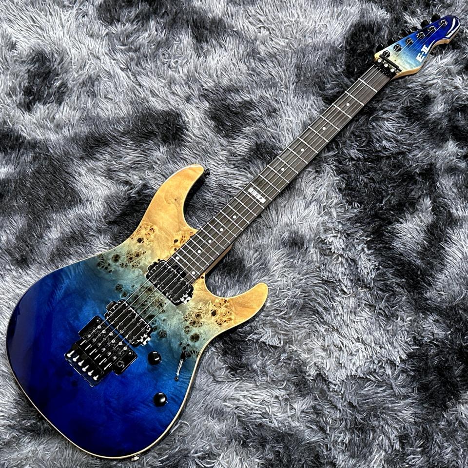 ESPのスタンダードモデル"Snapper"のスタイルを引き継いだモデル。こちらはエキゾチックなバールメイプルトップにフェイドカラーが映える1本。