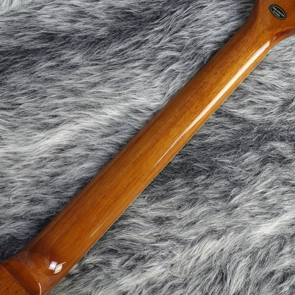 ボディトップにはメイプルが貼られ、1959ラウンドミディアムCシェイプのネックにはバインディングが巻かれロングネックテノン方式でボディにジョイントされています。