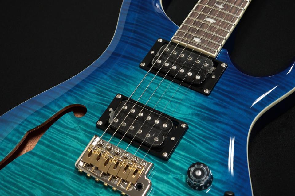 マッチングヘッドやヘッドストックと指板のバインディング、そしてランプシェード・ノブが織りなす洗練されたデザインが優れたプレイアビリティと融合し、多彩なサウンドメイキングを可能にした PRS SE Custom 24 Semi-Hollow Piezoは、ギタリストの幅広いニーズに応えることができるモデルとなるでしょう。