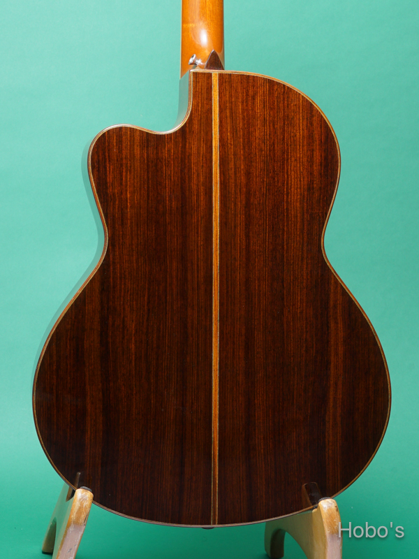 本ギターは工房開設時から製作している自身の名を冠した"THE MANZER"と呼ばれる代表的なボディーシェイプのモデルで、ギター市場において流通の稀な価値ある名品です。表板にシダー、側・裏板にはインディアン・ローズウッドがそれぞれ採用されており、太めの美しいアバロンロゼッタとウッド・バインディング、及びカッタウェイの仕様となっております。各弦太めでバランスよく響き、とりわけ低音域の音抜けは秀逸。ウッド感溢れる味わい深いな音色で適度な倍音があり、艶やかなプレーン弦と相俟って、絶妙な和音の混ざり具合を見事演出致しております。シダー/インディアンローズという定番とも言える材により紡ぐ、レスポンスが良く、澄み渡るような上品なサウンドメイキングは、高い技術と感性を持ち合わせたリンダマンザー氏ならではのもの。ラリビーや他のカナダの製作家のどれとも異なる玄人好みのまさに優れたギターで、唯一無二のギターをお探しの方にも特におすすめです。トップアーティストが唸る世界最高の手工サウンドを存分にご堪能して頂けることでしょう。