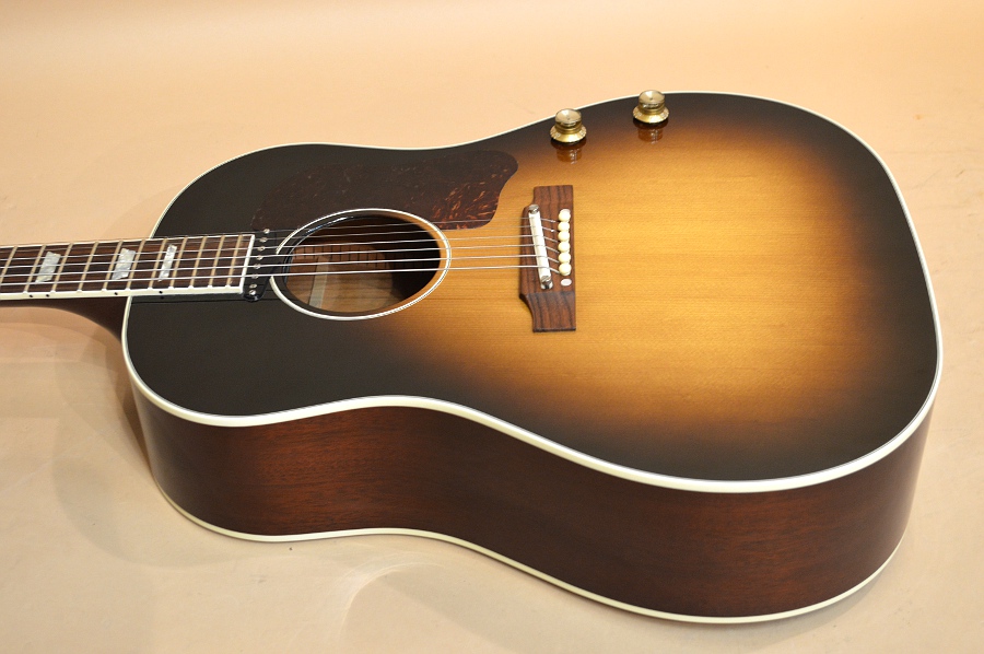 ビートルズ・ギアとしてあまりにも有名なモデル、ギブソンJ-160E。エレキ用のピックアップをそのままマウントしたエレアコの元祖的なこのモデルが発売されたのは1954年の事です。その後、ジョンとジョージが1962年製のJ-160Eを使用し、ジョンは更に1964年製のJ-160Eを使用、色を塗り替えたり剥がしたり、落書きしたりしながら、生涯を通して愛用しました。J-160E自体は1979年に一度生産完了となり、1990年からリイシューが始まります。ただ、このリイシューはJ-45のボディーをそのまま流用していた為、ボディーはオール単板で、生鳴りが良く、ビートルズ・ファンからはイマイチ不評でした(笑)。その後当時日本でのギブソンの代理店を務めていた山野楽器さんが日本向けにのみ作らせていた1964 J-160Eが登場します。今回入荷は山野さんが代理店を降りる直前にカスタム・ショップで作られた1960's J-160Eになります!