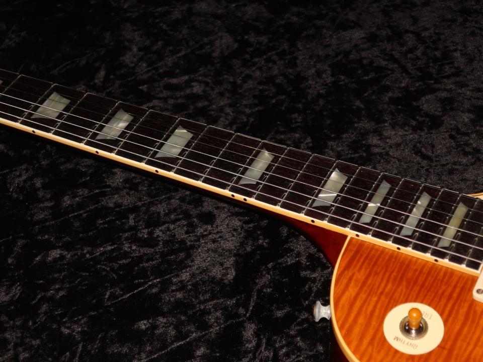 2025年4月 Gibson Brands Partner Experience Japan Dealer in Nashvilleにて現地選定材を使用した超リアルなLight Aged仕様。ネックシェイプは’59 LP “Cシェイプ”とフレットは’59 LPの"Medium Jumbo"、PUは今回オーダーに際して特別仕様の"Custombucker Alnico 2 “ アンポッテド“を搭載。キャビティ内のコントロール・ホットはヴィンテージのカーブを追及した500KΩポットにバンブルビー・コンデンサーもよりヴィンテージに近づけたものを搭載、指板とネックとボディーはハイドグルー(ニカワ)で接着されております。