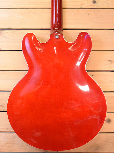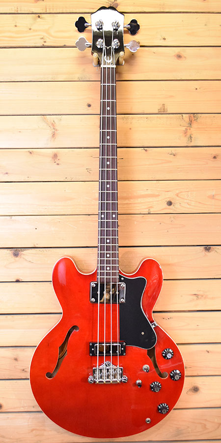 年式の割に使用感少な目な綺麗な個体です。目立った傷も無くブリッジやペグなどハードウェアコンディションも良いです。45-100ゲージにてネック調整済みでトラスロッドにも余裕がございます(この時期個体はロッドアクションが固めで範囲も狭いです)。フレット残量も8分山以上とタップリ残っており演奏性もバッチリ!探すとあまり無いセミアコベース!気になった方は是非この機会に。