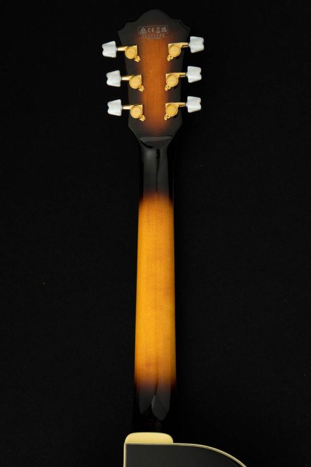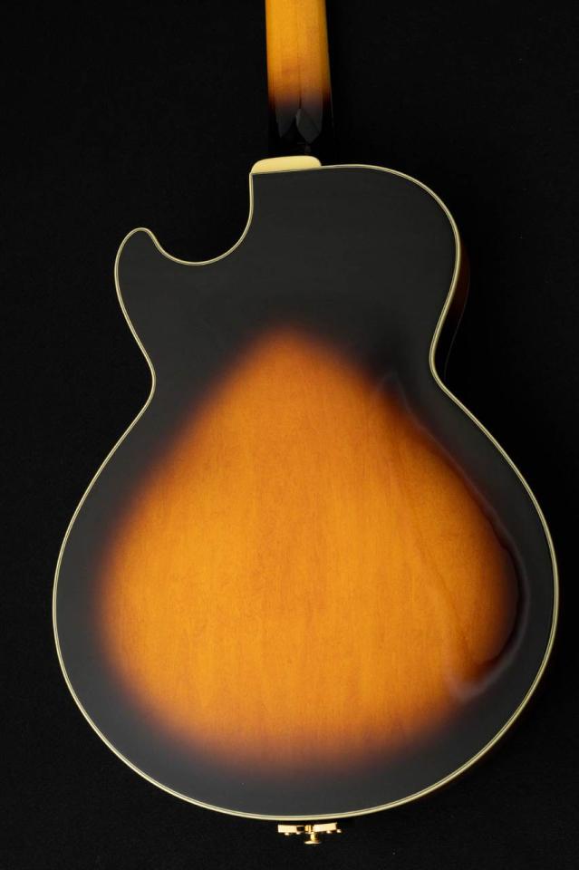 15インチサイズの小振りなホロウメイプルボディに、ネックはメイプルの3ピース、指板にはエボニーのマテリアルとなっております。