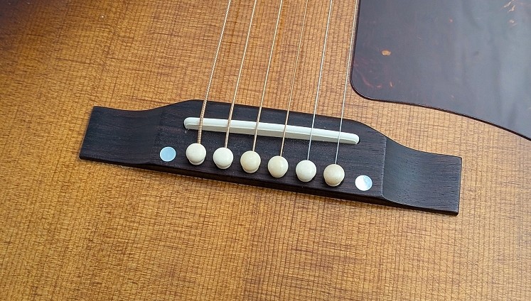 牛骨製のナット&サドルとブリッジピン、べっ甲柄のラージピックガード。