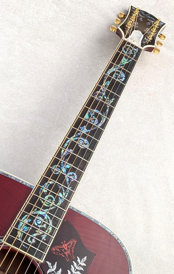 ヘッドストックと指板にはゴージャスなAbalone Vine装飾が細やかに施されております。