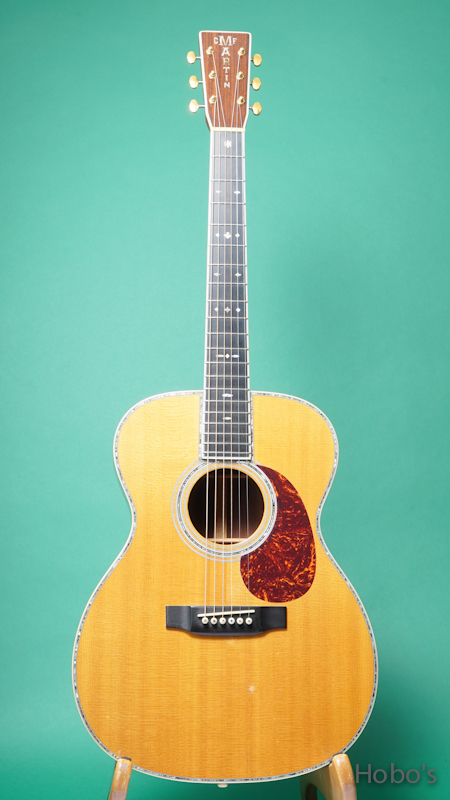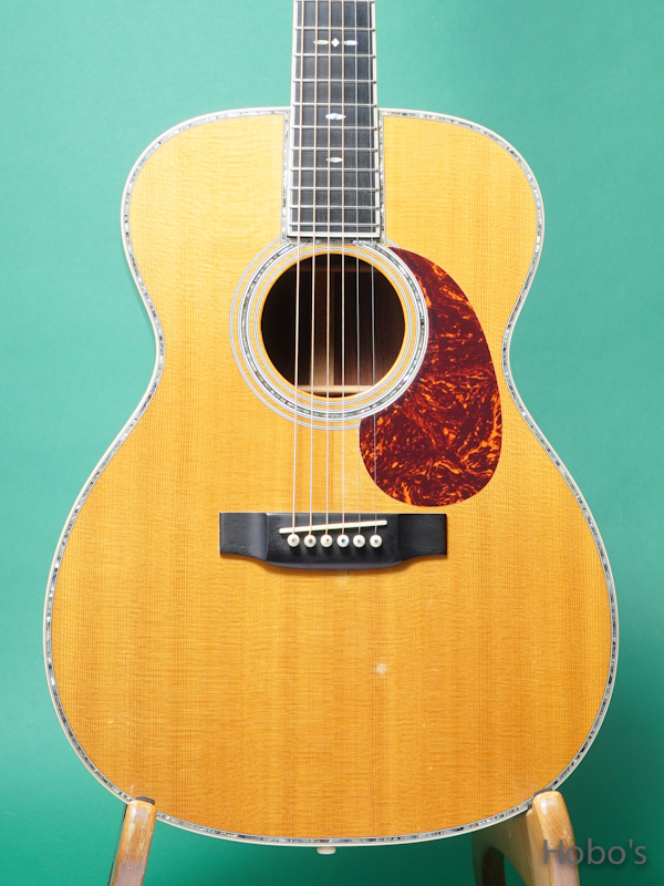 ブックマークする 値下げ通知に登録2001年製 MARTIN OOO-42 が入荷致しました。OOO-42のオリジナルは1918年に2台発売されて以来断続的に年間数台から数十台程度製作しており、1943年の6台を最後に途切れております。OOO(トリプル・オー)サイズが14フレット/ソリッドヘッド仕様へとモデルチェンジし、現在と同じスタイルとなったのは33年のこと。14フレットのOOO-42は32年から43年にかけて114台が製作されました。また1990年代初頭のMTVアンプラグドブームにおいて、エリック・クラプトン氏が使用したことで再評価され、現在もその人気は衰えることなく不動の地位を獲得したことでも知られております。
