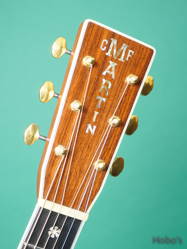 本ギターはラインナップ中、高い人気を誇るハイエンドモデルで、中古市場において最も高い人気を誇る逸品です。糸巻きにウェバリー社製が採用され、ネックブロックにカスタムと表記されていることが最大の特徴と言えるでしょう。更に特筆すべきは、日本人好みな大変美しいデザイン。アバロンによるロゼッタやボディートリム、指板のスノーフレイクスインレイ及びヴァーティカルロゴが上品な外観を見事に演出しております。ヴィンテージフレーバー溢れるこの美しい伝統的デザインは、ステージングにおいても見る者弾く者を魅了することでしょう。倍音のあるやや硬質な響きはとても綺麗なサウンドで、44.5mmナット幅仕様により各弦太めの出音は秀逸。コードバランスにも優れております。ギターインストやブルースは勿論のこと、歌ものの伴奏ほか音楽性を問わず幅広くご活用頂けること必至で、ハイエンドスタイル42ならではのエレガントサウンドの魅力を存分にご堪能して頂けることでしょう。