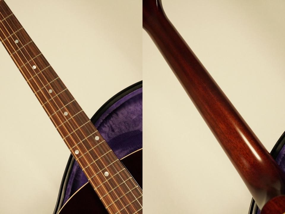 ワンピース・マホガニーのネックは、ギブソンと同様にダヴテイル・ジョイントでボディに接合され、奥田民生氏愛用の1945年製ギブソンJ-45をベースとした厚みのあるネック・プロファイルを採用。ヴィンテージ・ギブソンのフィーリングをお楽しみいただけます。