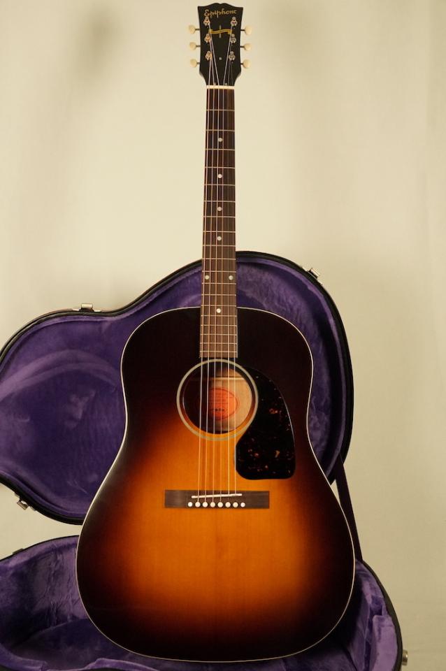 当モデルは、奥田氏愛用の1945年製J-45をベースに2021年にリリースされた『Gibson Tamio Okuda J-45』のエピフォン版で、奥田民生氏監修のもと制作されました。ギブソン・カスタムとエピフォンのコラボレーションにより誕生したエピフォンのプレミアム・シリーズ『Inspired By Gibson Custom』からリリースされ、ルックスからサウンドに至るまでギブソンに限りなく近づけたクオリティを、よりお買い求め安い価格帯で提供します。