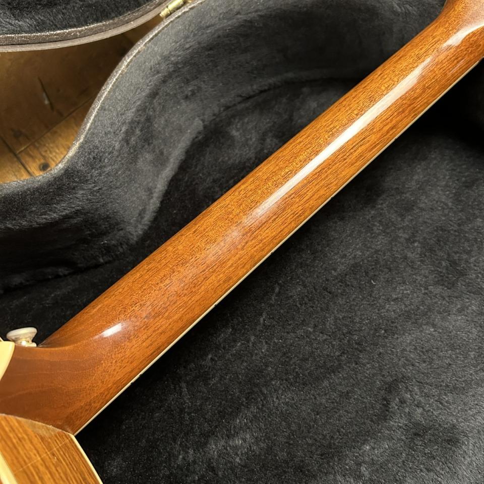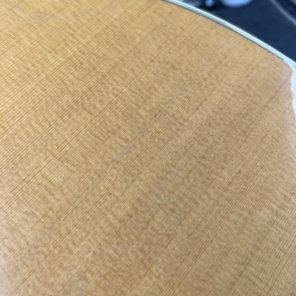 ボディトップブリッジ下からエンドにかけてとピックガード上部分の2個所、トップ割れ補修跡がございます。