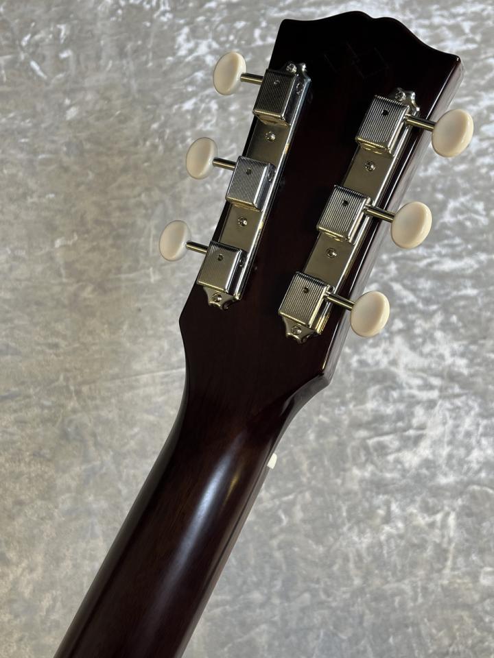 エピフォンの“スクリプト&バナー”ロゴがあしらわれた“オープンブック・ヘッドストック”と呼ばれるギブソンと同じヘッド形状があげられます。また、ヘッドに搭載されているチューナーも、ギブソンと同じクリームボタン・タイプを採用し、一見するとギブソンと見分けがつかないほどの再現性を持ちます。