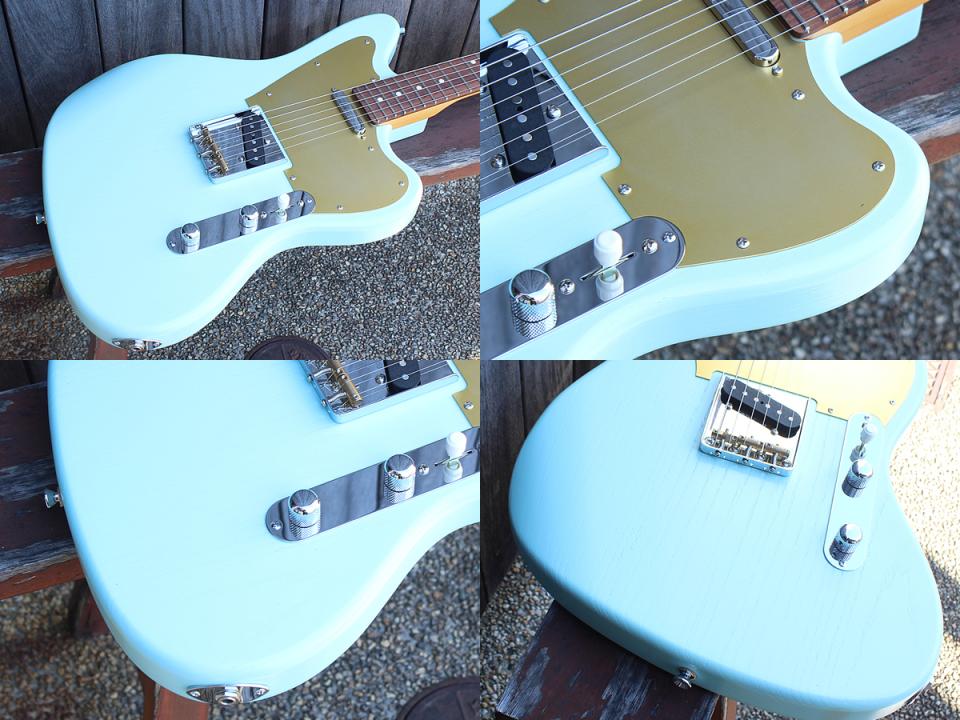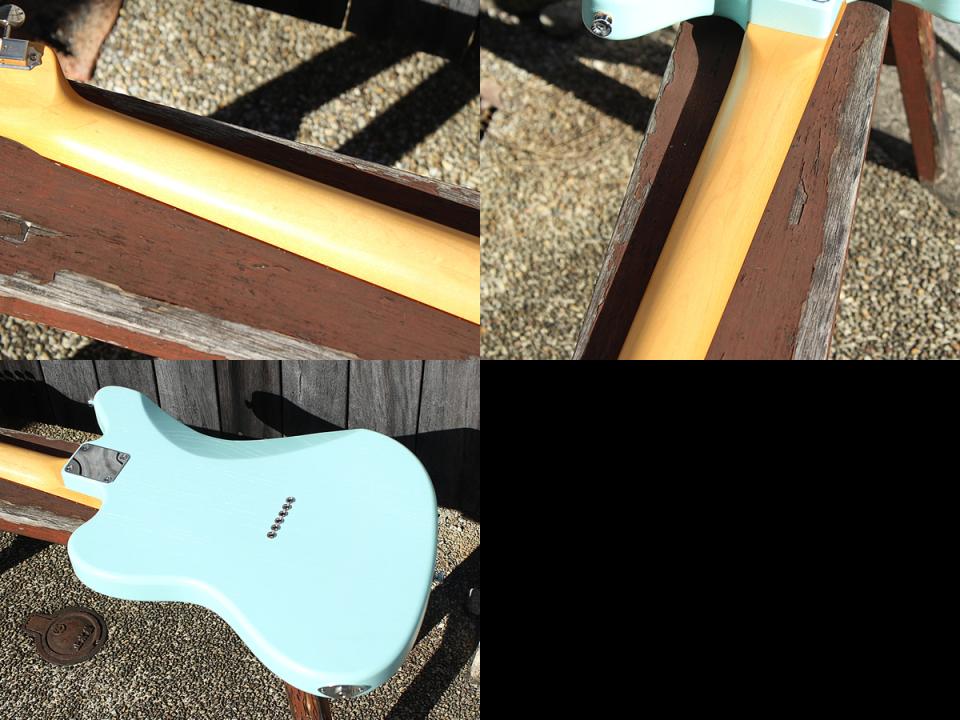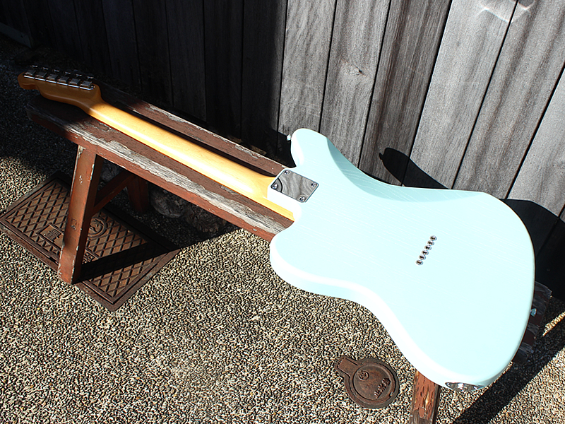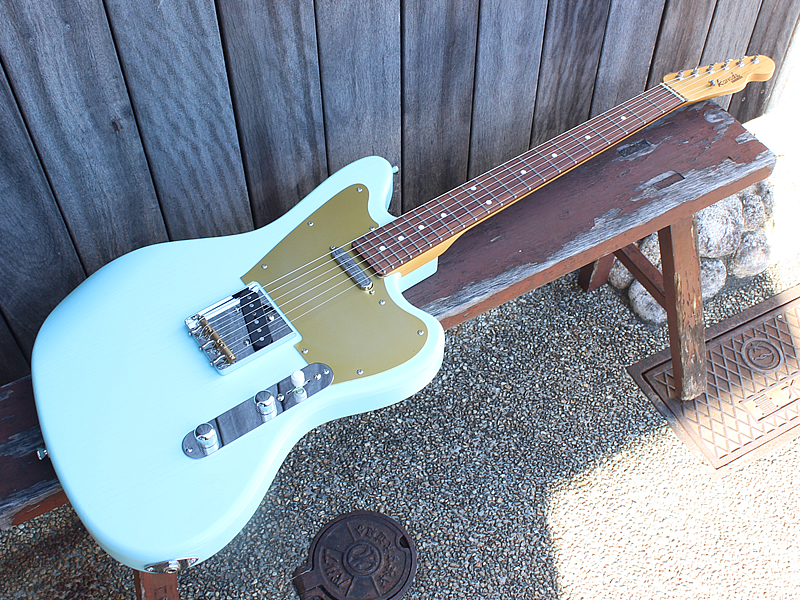 本人コダワリのカラーSoldier Blueはハーフマット仕上げ。アノダイズドピックガードと合わせて親しみのある配色となっています。フレットはミディアムサイズでガッツのあるKariya-Pickupsも相まってロックなサウンドを奏でます。あまり弾かれた形跡はなく、非常に美しいコンディションです。