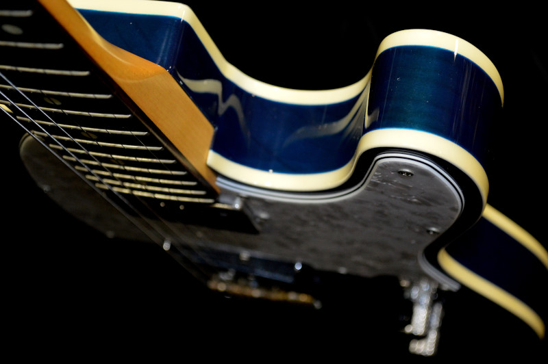 アッシュボディ、ローズウッド指板、シースルーブルーバーストカラーという組み合わせ。