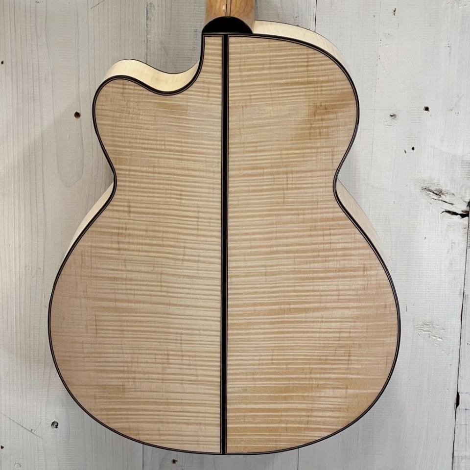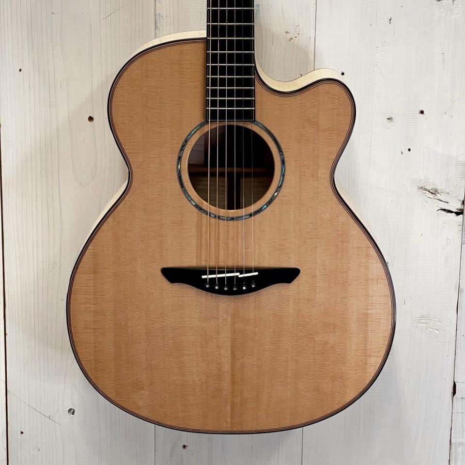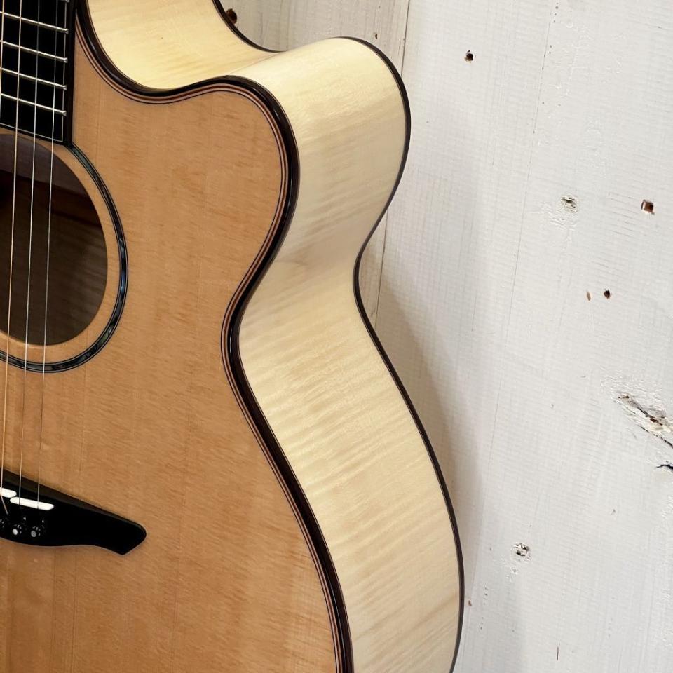 アイルランドのギターらしく、もともと硬質ではっきりとした音が特徴のメーカーですが、メイプルサイドバックとジャンボサイズの組み合わせで、低音域にずっしりとした独特の深みが感じられます。