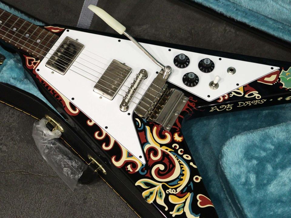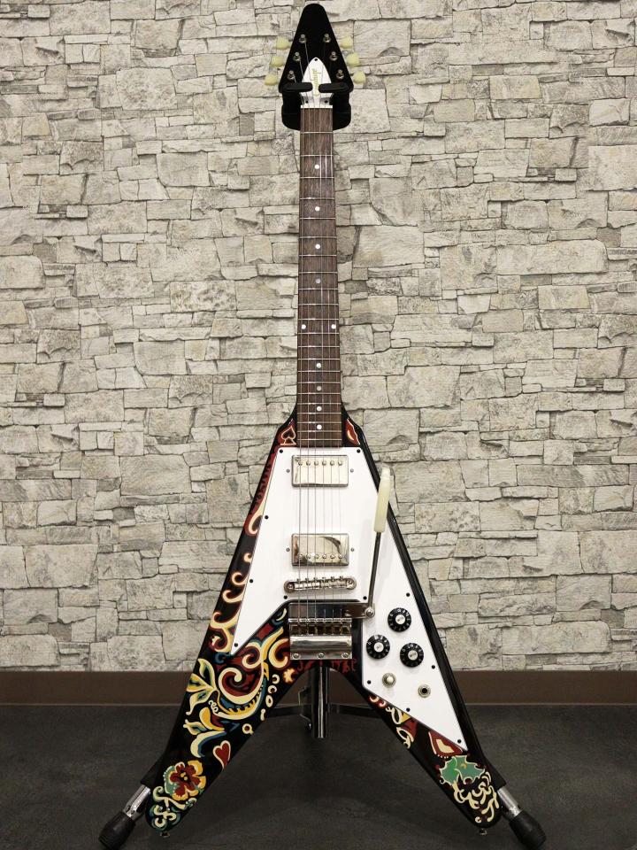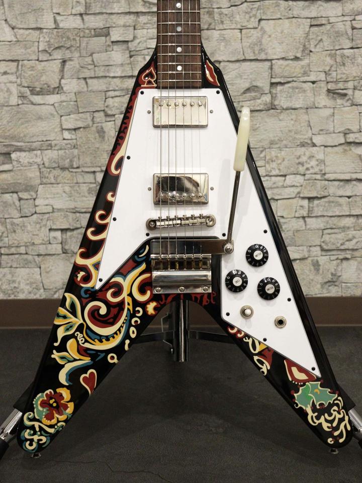 1967年から1969年にかけてジミが多用したギター「Jimi Hendrix “Love Drops” Flying V」の復刻モデル「Epiphone Inspired by Gibson Custom Jimi Hendrix 'Love Drops' Flying V Ebony」の2024年製中古品です。