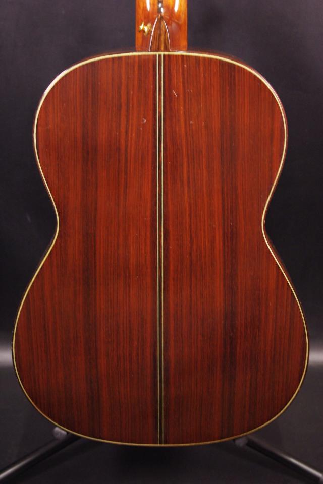 国産!松岡良治ギター工房で生産されたアランフェス No.715が入荷しました!!トップはドイツ松、サイドバックにはローズウッドが有力のオール単板モデル!ゴトー製のゴールドペグ、ブリッジはローズウッド材でダブルホール仕様になっているのも特徴です!シリアルナンバーから2008年頃に生産された個体で指板の1フレット1弦側に亀裂補修がありますが演奏するにあたって支障ございません。全体的に打ち傷、使用感は見られますが演奏性、サウンドが優れていますのでおすすめです。ネックヒールへはストラップピンが打っています。LR.Baggs社のiBeamアクティブピックアップが搭載されておりライブでもお使いいただけます。ナット幅は約51mm近く、ネックのアングルも理想的でフレットの状態も良いです。弦高は12フレット6弦側で約3.5mm、1弦側で約2.3mmの高さで調整していますがお好みに合せた微調整にもお応えいたします。甘くて柔らかい豊かなサウンドで非常に癒されます!弦長は標準的な約650mmとっており音も大きく軽いタッチで抜けてくれます!マイク付きで手軽に使えるクラシックギターで探していた方にとっては嬉しい1本です。セミハードケース付き