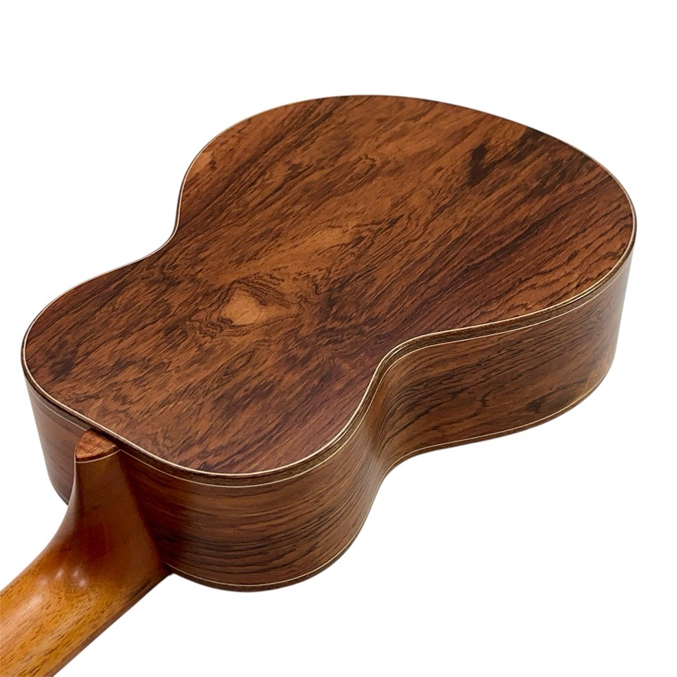 今回製作されたコンサートモデルは、ボディトップに極上の"ヨーロピアンスプルース材"を採用。サイド・バックには"ホンジュラスローズウッド材"を使用し、素材の美しさと音響性能が絶妙に融合した逸品です。