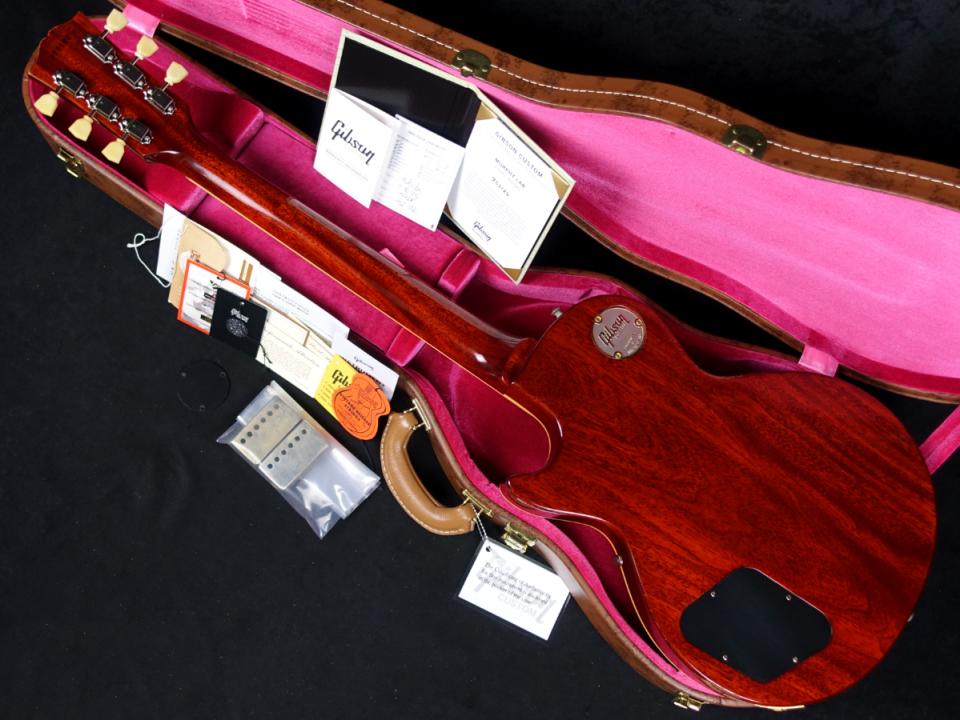 2019年にリファインされた、リアルさを増した“Gibson”&“Les Paul”ロゴ、リアルな色味に変わったディッシュインレイの採用による外観上のブラッシュアップやアンポッテッドのカスタムバッカー、ヴィンテージライクなキャパシターやポットを搭載。