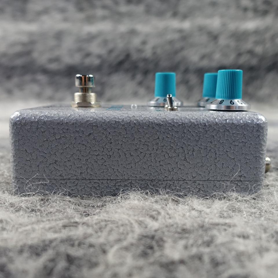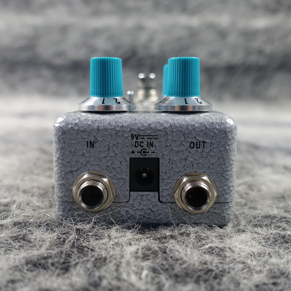 堅牢度の高いシルバーの 4.375” x 2.375” x 1.25”サイズの筐体にはペダルボード上での使用を想定し、インプット/アウトプットのジャックを上部にまとめるという工夫が成されています。