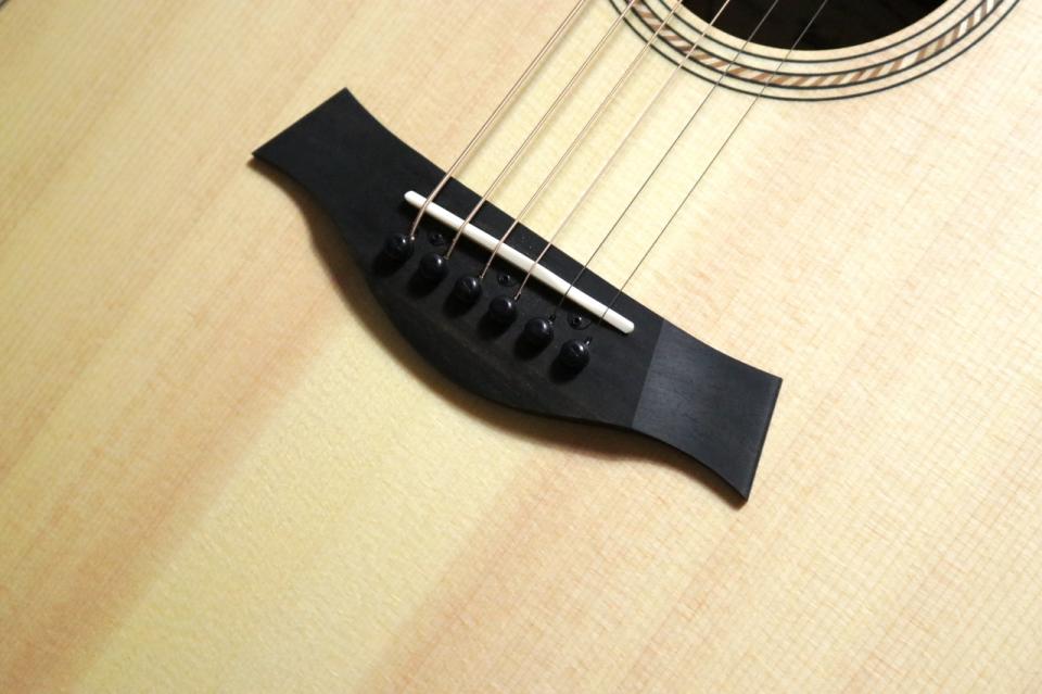 ボディトップにソリッド・シトカスプルース、サイド&バックにレイヤードのサペリを使用。裏側が膨らんでいるラウンドバック構造のため、このクラスのギターでは十分な音量、生鳴りを確保しています。