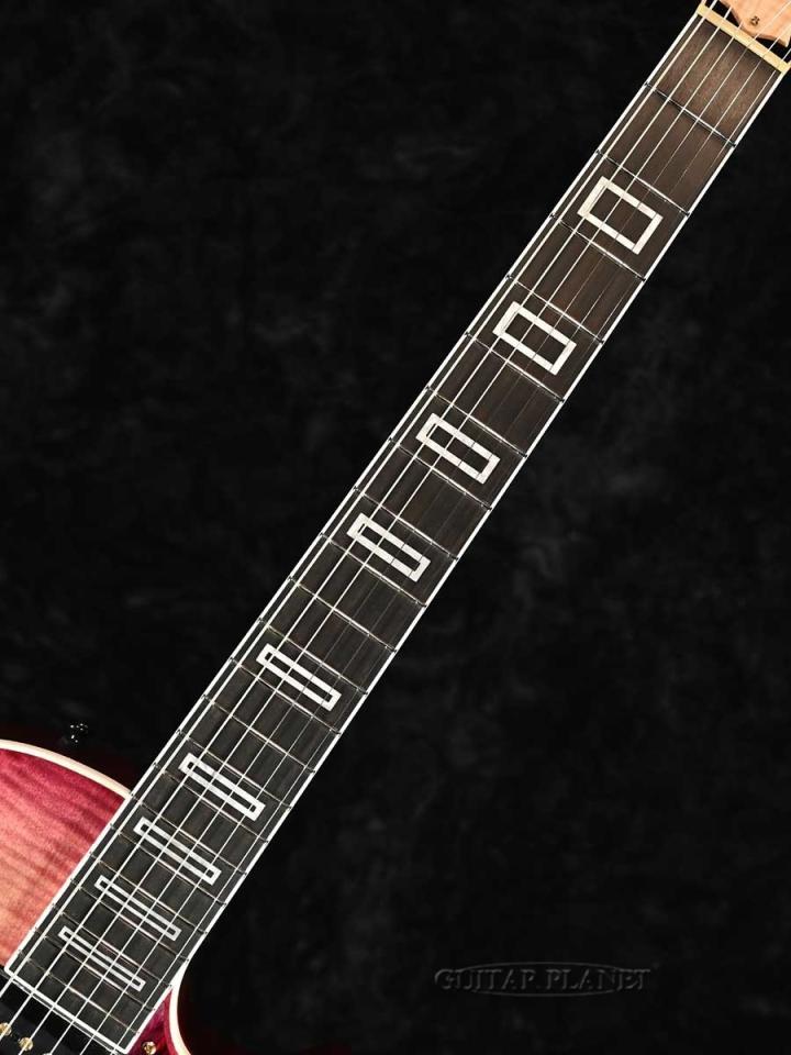 こちらは特徴的な杢目を持ったフレイムトチトップ、アフリカンマホガニーバックのボディに、
