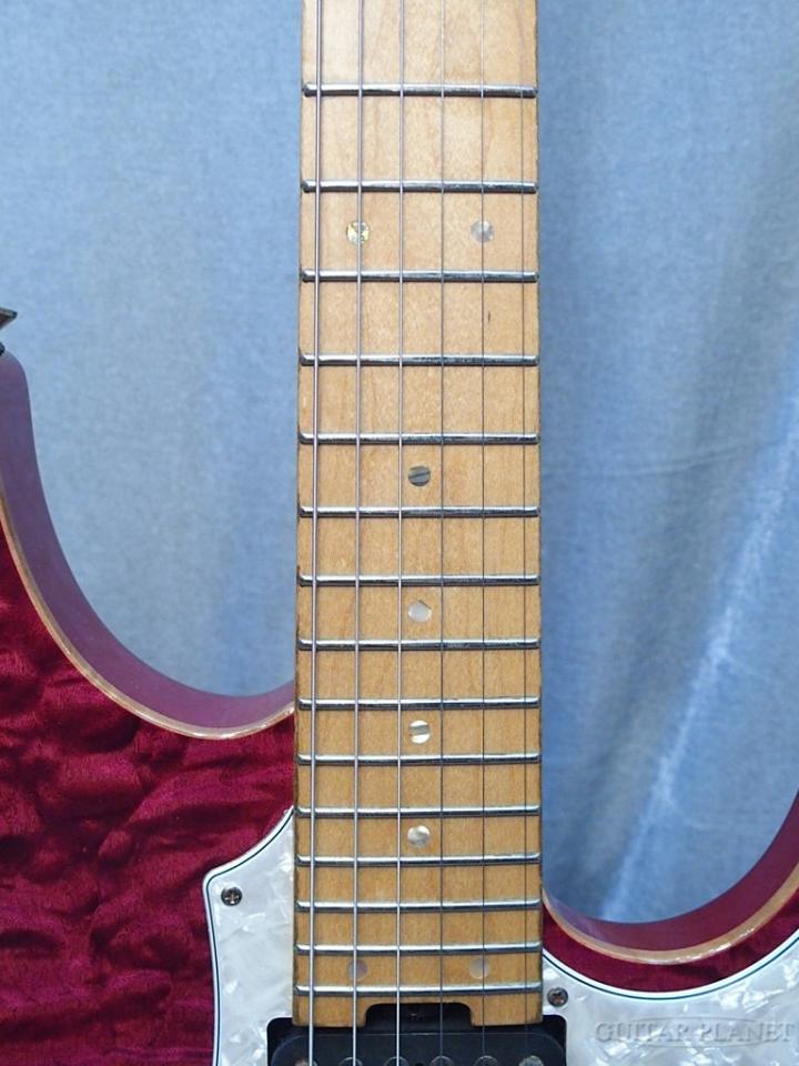 ボディは美しい杢目の希少材Quilted MapleをトップにAlderをバックにした出音のバランスの良い木材を使用、ネックには強度に優れたHard Mapleを使用、指板にはレスポンスに優れたMapleを使用し24フレットで超高音までカバーします。指板のラディアスは240R-305R高音側に向かって緩くなるコンパウンドラディアスを採用、低い弦高セッティングでも、ビビりにくくコードも押さえ易くなっています。