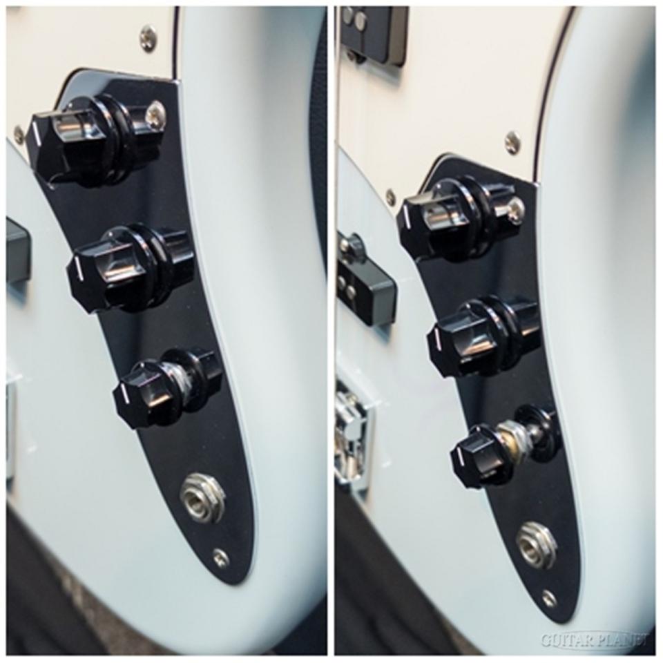 コントロールは2ボリューム+1トーンに加え、トーンノブのプッシュ/プル操作によりピックアップをシリーズ接続に切り替え、プレシジョンベースのような太く力強いファットなサウンドへの切り替えが可能です。