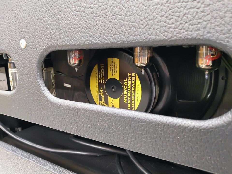 大定番チューブアンプ"ホットロッドデラックス"の2001年頃製メイドインUSAモデルのUSEDです。フェンダーらしいきらびやかなクリーンから抜けの良いハイゲインサウンドまで、40wながら音量音圧は充分でスタジオやライブで扱いやすい一台です。コントロールパネルのくすみや脚部分の錆び、全体的に汚れは見られますが、外装の剥がれやネットの傷みはほとんどなく年代を考えればキレイなコンディションです。プリ管の2段目がSOVTEKのAY管に交換有り。その他は純正GT管のままですが、サウンドはまだまだ元気で現状にて問題ありません。フットスイッチが付属します。
