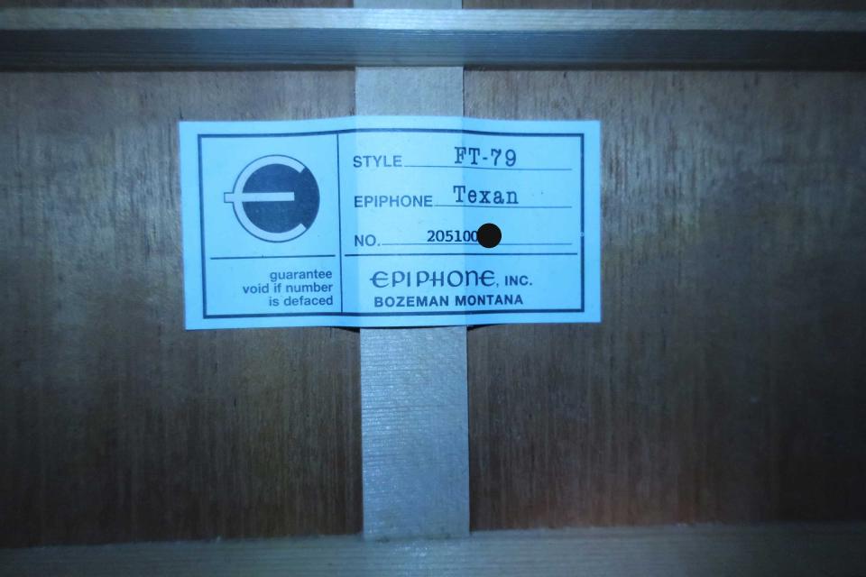 在庫一覧 Epiphone FT-79 Texan U.S.A / Gibson Montana Factory・Original Deluxe Peg・Solid Spruce Top・Solid Mahogany Side and Back・Mahogany Neck・Rosewood fingerboard and Bridge・With Original L.R.Baggs Element VTC【With Original Hard Case】2020年製