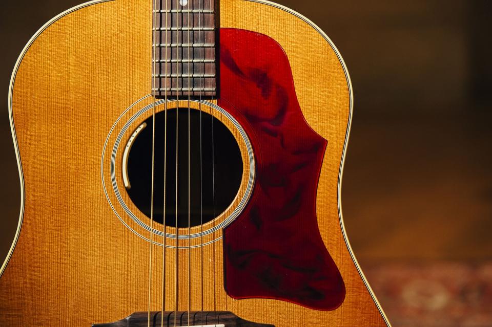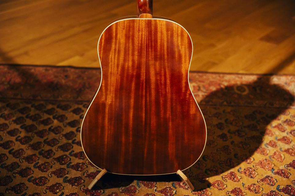 Hata Motohiro J-45のHeritage Cherry Sunburstフィニッシュは、Murphy LabによるUltra Lightエイジング加工が施され、秦基博氏のギターのフィーリングと雰囲気を再現しています。
