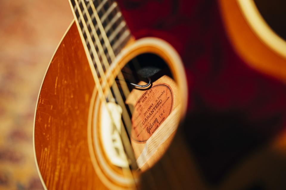 今回、Gibson Custom Shopとタッグを組み、新たなシグネチャーモデルHata Motohiro J-45™を製作。秦 基博氏が長年愛用してきた1966年製J-45をベースにしています。今回のJ-45は、Thermally Aged加工と呼ばれる熱処理を施したシトカスプルーストップと、マホガニーバック&サイドが特徴。マホガニーネックは、1960年代のカスタムカービングネックコンターと1965年から採用されたナロウネック(ナット幅:約40mm)を再現し、ローズウッド指板には20フレットのレジェンドフレットが採用されています。ナットは牛骨製、チューナーはクリーム色のボタンを備えた信頼性の高いGotoh®製。ブリッジはローズウッド製で、牛骨製サドルとクリーム色のプラスチックブリッジピンを備えています。Hata Motohiro J-45は、ご本人所有の1966年製J-45同様にL.R. Baggs Anthemピックアップを搭載。