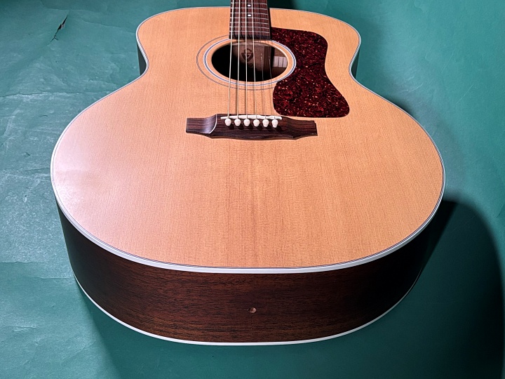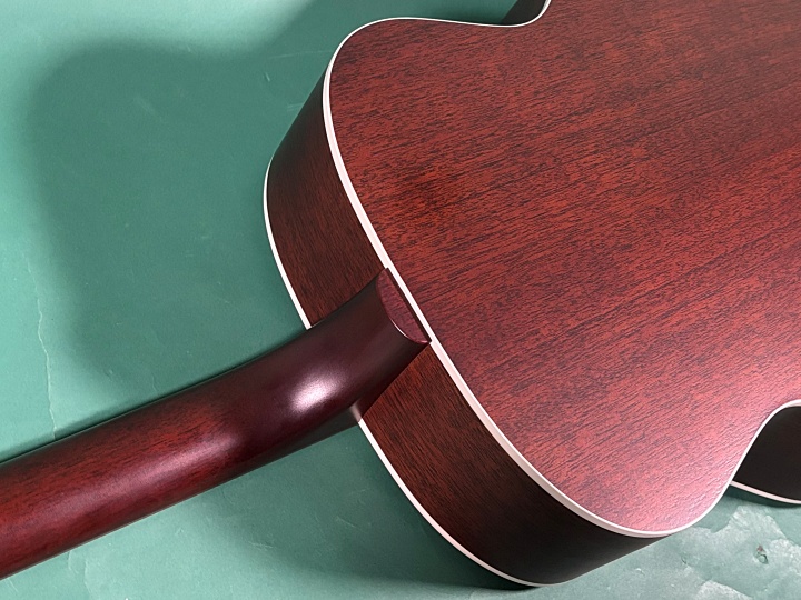 見た目の大きさよりも、楽器が軽量に設計されており、しっかりとボリュームがあります。レスポンスが良く、粒立ちの良い鳴り、マホガニーボディーらしい軽快なトーン、ストロークでも指弾きでも演奏スタイル問わず、オールマイティーに使えるモデルです。