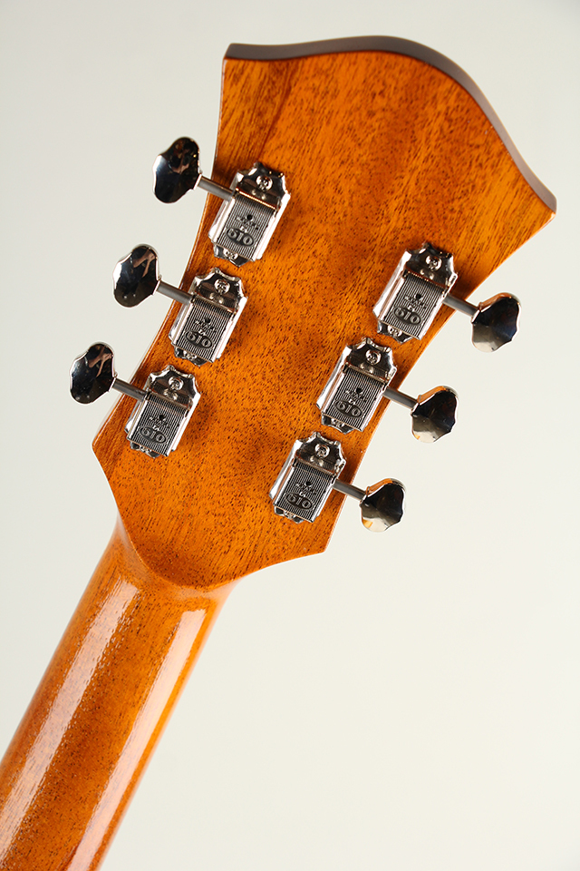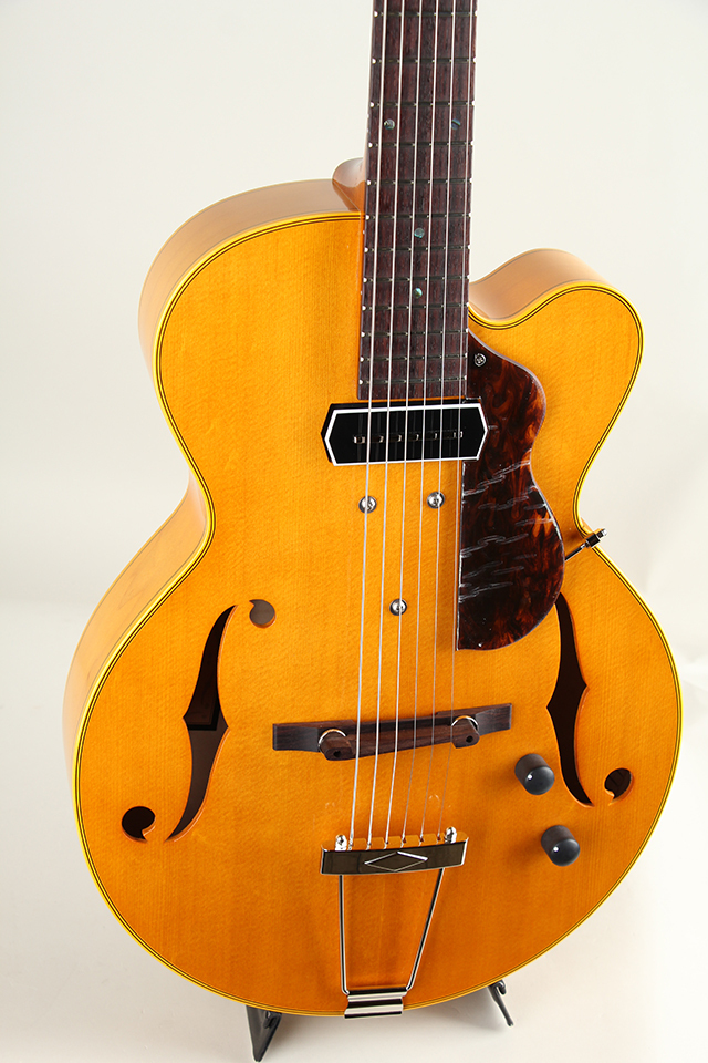 ”オールドスタイルのフルアコ”をコンセプトとして製作された当モデルは、ウッドスペックや基本設計は通常のLadybagをベースとながら、ピックアップにはローラー製チャーリー・クリスチャン・ピックアップを搭載、ブリッジはアコースティック感とビンテージフィールを求めてウッドブリッジをセレクト、塗装も極薄のラッカー塗装を採用しております。カラーも色焼けた質感を再現したアンティーク調に仕上げられており、その佇まいも魅力です。