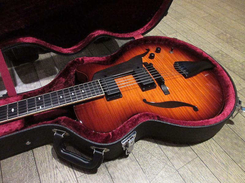 1970年代にリペアマンとしてキャリアをスタートしたロジャー・サドウスキー。そのサウンドと製品の持つクオリティーへの理念を共有し、日本で確かな技術を持って製作されるSadowsky JapanのLS-15が入荷しました。コンパクトなボディーと薄いボディーによる取り回しの良さ、フルアコらしい充実したエアー感と抜群のプレイアビリティーを誇る本機。25.5インチのロングスケールと16フレット位置でのネックジョイントにより、このモデル特有のトーンキャラクターを誇るモデルに仕上がっています。エボニー指板、マホガニーネック、プレミアムフレイムメイプルボディーにPAFスタイルのカスタムワウンドピックアップを搭載。僅かな小傷程度の美品で、ネックコンディションも抜群の個体です!現在は生産中止となっており、新品での入手は不可能な為、クリーンなコンディションのLS-15をゲットできるチャンスは限られております!この機会を是非お見逃しなく♪オリジナルハードケース付属。