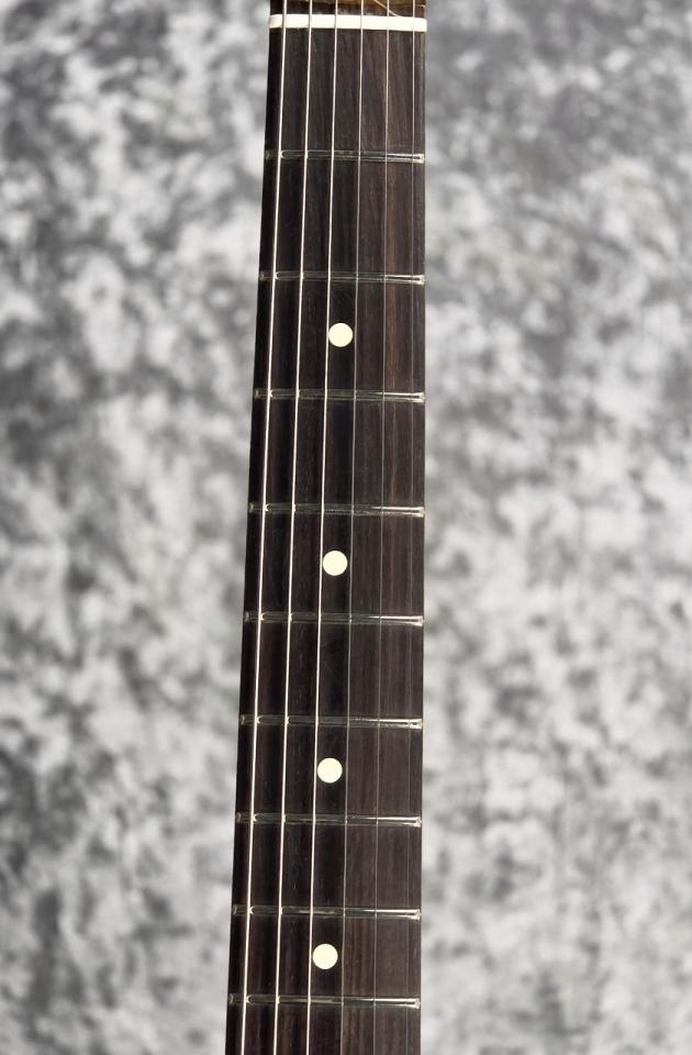 弦高を低めにセッティングしやすい9.5"Rの指板とミディアムジャンボサイズの組み合わせを採用しており、
