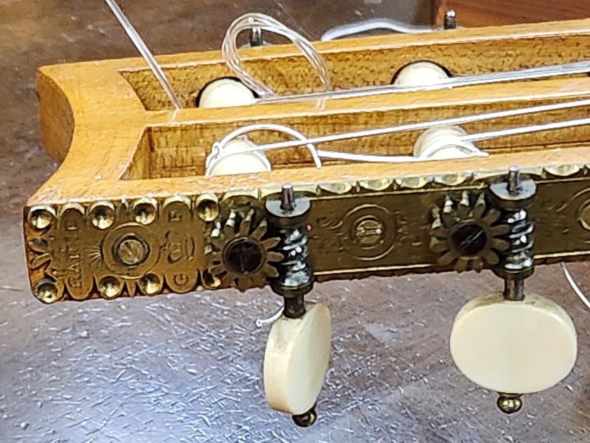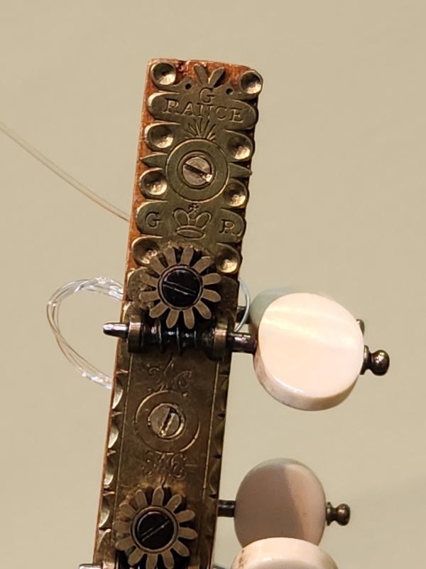 フレットは金属製、糸巻きはRance社製でBaker社と並びパノルモに標準的に装着されているものです。