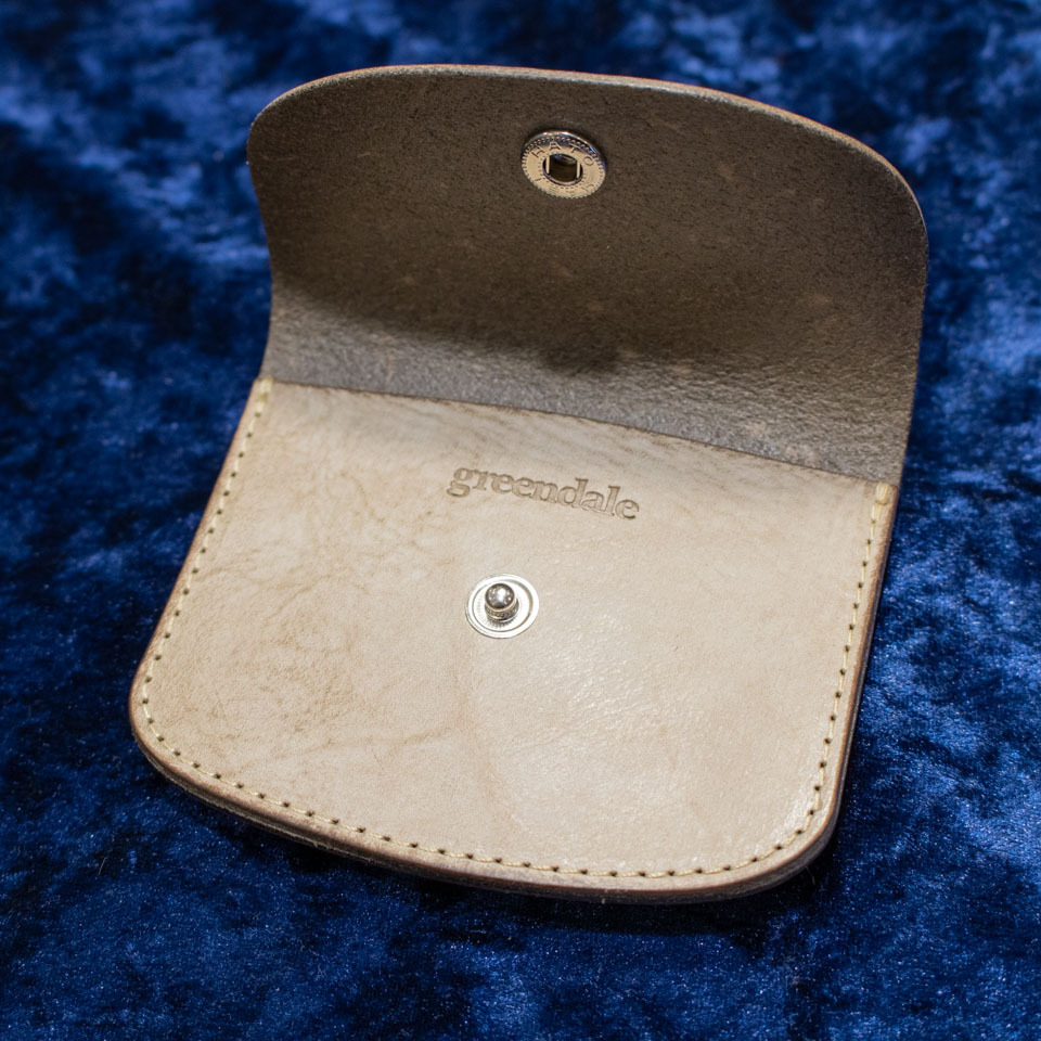 国産ハンドメイドストラップブランドgreendaleによる、ストラップ製作の際に生じる端材を利用した、エコな革製ピックケース。