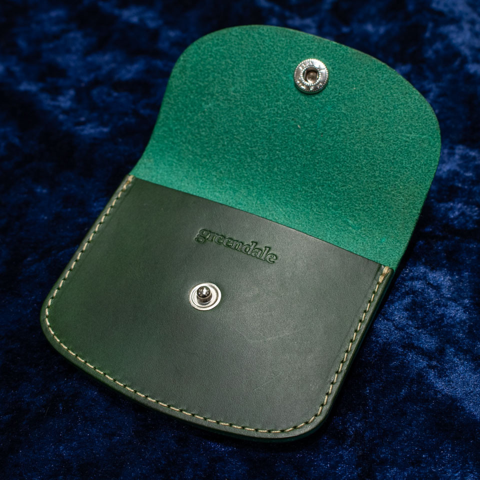 国産ハンドメイドストラップブランドgreendaleによる、ストラップ製作の際に生じる端材を利用した、エコな革製ピックケース。