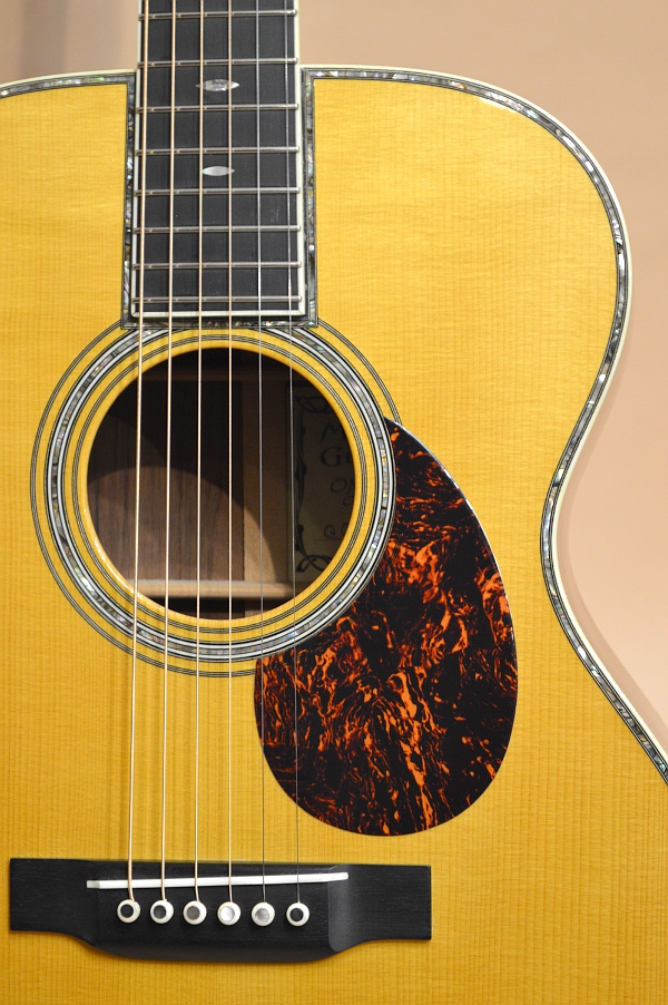 サウンドもマーチンらしい華やかで美しい弾力性も感じられる極上サウンドです!OMボディーらしいレスポンスの良いローに、マーチンならではのゆったりとした奥行きと弾力性のあるミドル、貝巻きモデル特有の煌びやかな倍音を伴ったスズ鳴り感たっぷりなハイなどが混然一体となり、優美で美しい、且つ耳当たりの優しい癒しのサウンドを奏でます。フラットピックで掻き鳴らせば、ロング・スケールならではの張りのあるボリューム感満点のダイナミックなサウンドを響かせますし、フィンガーで爪弾けば、レスポンスが良くキラキラと輝くような美しくふくよかなサウンドを奏でますので、あらゆるジャンルやプレイ・スタイルでマーチンの最高級機種ならではのエレガントなサウンドをお楽しみ頂けます!