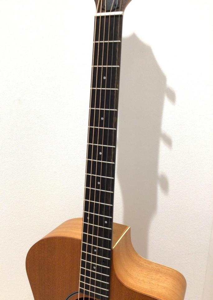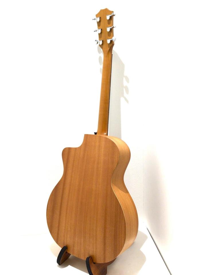全音域を通してバランスよいフルサイズのグランドオーディトリアムボディを持ちつつも、ネックジョイントにBaby Taylorに採用されているシンプルなタイプを採用することによりお求めやすい値段を実現。